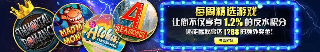 活动内容 :聚义堂每周将选出一个老虎机平台的指定游戏,会员在该指定游戏完成指定投注要求后,将得到相应奖金,最高赠送1288元!